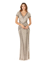 Lara 29746 - Beaded V-Neckline Dress with Cap Sleeves