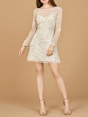 Step into celebration mode with the Lara 51218 bridal dress. Featuring long bell sleeves adorned with delicate beads in a charming floral pattern, this little white dress is designed to turn heads. The high illusion neckline paired with a graceful v-back adds a hint of allure, while the flowing A-line skirt keeps the vibe carefree and fun. Perfect for receptions, bachelorette parties, or bridal showers, this dress blends playful elegance with bridal spirit effortlessly.