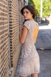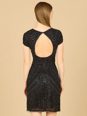 Lara Brooklyn Beaded Fitted Short Dress with Open Back