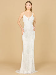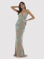 Lara Danika Floral Beaded Sheath Beaded Dress with Beaded Fringe
