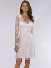 Lara Eliza Beaded A-line Bell Sleeve Bridal Short Dress