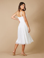 Beaded v-neckline sheath gown. The gown features long flowing A-line silhouette giving a perfect sequined Midi look. One of our most versatile styles that can be worn for a host of Bridal occasions like a change-into dress for an after party, bridal shower or even as a rehearsal dinner dress.
