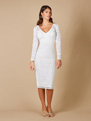 Lara Gloria Long Sleeve Beaded Midi Dress