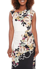 London Times Asymmetric Neckline Sleeveless Zipper Closure Streamlined Ruched Side Detail Midi Sheath Dress