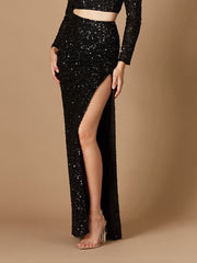 Long Side-Slit Beaded Skirt