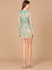 Long Sleeve Beaded Cocktail Dress