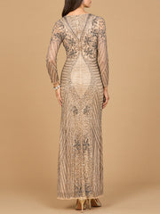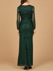 Get ready to turn heads with the Lara 28888 Long Sleeve Beaded Gown! This stunning sheath dress features intricate beading and a flattering v-neckline. With long sleeves and a classic design, it's perfect for any mother of the bride. Let your elegant style shine! (No other dress can bead it!)