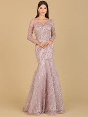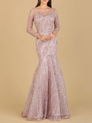 Beautiful mermaid gown with long sleeves and an illusion sweetheart neckline. Fitted to show your curves in a flattering way! One of our most versatile styles which works for a wide range of ages including a young mother of the bride, sister of the bride/groom or even the bride on her reception night!