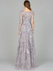 Beaded A-line gown with long sleeves and a high neckline for a modest but classy look. Fully embroidered with multicolor lace and beads. Perfect for the guest of a wedding, or elegant mother of the bride dress in a standout beading pattern!