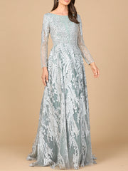 Elevate your style with this exquisite gown featuring a stunning lace design and embellished sleeves, paired with a sophisticated high neckline for a modest yet elegant appeal.