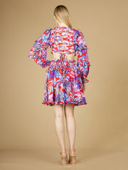 Long Sleeve Print Cocktail Short with Lace Up Back and Cutouts - OUTLET