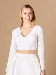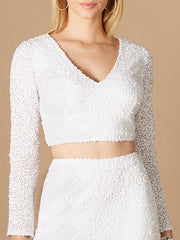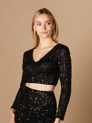 This Lara beaded long sleeve beaded top is the perfect value addition to your wardrobe. It offers versatility to wear for a fancy night out or can be used as a two-piece with one of our skirts or pant combos for mix and match fun. Features a back zipper, has a v-neckline and a fitted bodice with built in cups so no need for a bra!