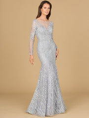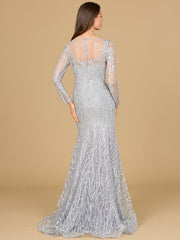 This lovely gown featuring an illusion, sweetheart neckline and long sleeves is an absolute stunner. This dress is finished off with a mermaid bottom and has all over lace appliques. One of our best fitting bodies for a classy look.