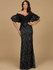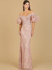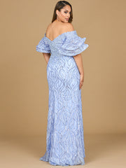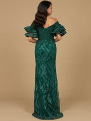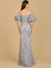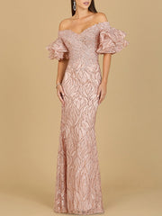 Off Shoulder Mermaid Beaded Gown with Tiered Sleeves
