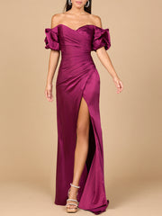Take the plunge and show off those shoulders in our Lara 28957 satin dress! This elegant dress features a flirty off shoulder neckline, complemented by ruffled sleeves for a touch of whimsy. The ruched bodice hugs your curves, while the stretchy fabric ensures a comfortable fit all day long. Simple, yet oh so elegant!