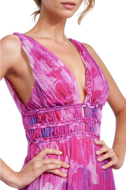 MK4996 One 33 Social Perry Pleated Plunge V-Neckline Maxi Dress