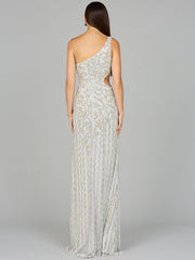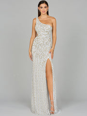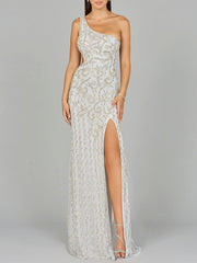 One-Shoulder Beaded Gown with Slit