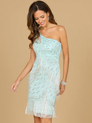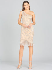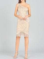 This beaded midi, knee length dress features a fitted skirt to accentuate your curves. It has a one shoulder strap giving it a sexy style, with support. Stand out in this simple and classy sequin gown with fringes from Lara!