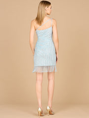 Be daring and flirty in this oh-so-stylish mini-dress! Its one shoulder silhouette is decked out with a gorgeous beaded pattern and fringes on the hem, perfect for a glamorously fun night!