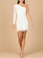 Be effortlessly stunning in the Lara 51196 One Sleeve Beaded Cocktail Dress! With a unique one shoulder design and intricate beading, this dress is perfect for brides or as a second dress. Stand out at any cocktail event with this chic and playful choice.