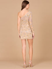 Unleash your playful side in this sleek one sleeve cocktail dress. With a multicolor beaded design and one beaded sleeve, this dress is a fun and unique addition to your wardrobe. Perfect for any cocktail party or special event, be the talk of the night in this quirky and stylish piece!