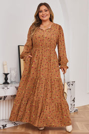 Plus Size Floral V-Neck Ruffle Sleeve Tiered Dress