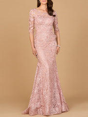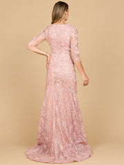 A stunningly graceful mermaid gown crafted from fitted lace and boasting an illusion high neckline. Emanating enchantment from its glittering multicolored rhinestones and floral lace appliques, this dress also includes chic illusion sleeves and glamorously showcases your silhouette with a high illusion back.
