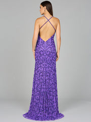 This spaghetti strap beaded dress has a high slit and a cross low-back. A perfect dress for prom or a fancy night out!