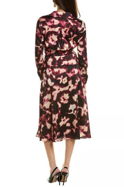 Tahari ASL V-Neck Long Sleeve Button Cuffs Slip Pockets Surplice Tie Waist Midi A-Line Satin Dress
