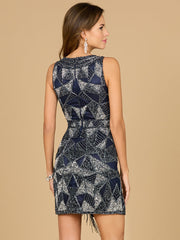 V-Neck Beaded Mini Dress with Closed Back and Fringes