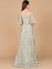 This timeless gown is ideal for a mother seeking both coverage and sophistication while maintaining an air of elegance and refinement. Indulge in luxury with this A-line gown adorned with intricate bead and rhinestone embellishments, featuring elegant cape sleeves and a refined v-neckline crafted from our premium lace fabric. Available up to size 26, it is the perfect fit for women of all sizes.