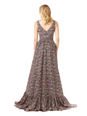 V-Neck Long Print Gown Hi-Low Wrap OUTLET