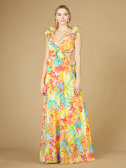 V-Neck Long Print Gown with Ruffled Straps - OUTLET