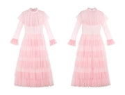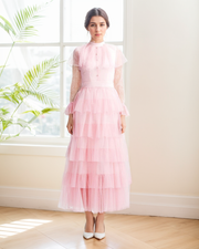 Vintage high neck Layered Ruffle tutu Skirt tulle prom dress with sleeves