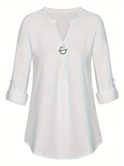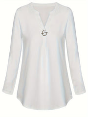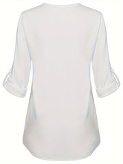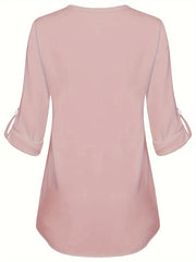 Women's Long Sleeved Simple And Versatile Casual Pearl Button Shirt