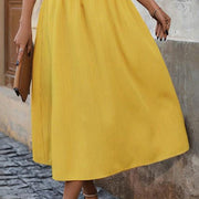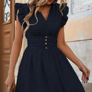 Women's Solid Color Sleeveless V-Neck Dress - High Waist Ruffled Hem Boho Flowy Summer Dress With Shoulder Frills, Casual & Party Dress
