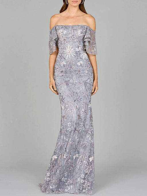 View full detailsMarvelous mermaid dress with off-shoulder sleeves, covered in an elegant lace floral pattern. This sultry style flatters your physique to perfectio...