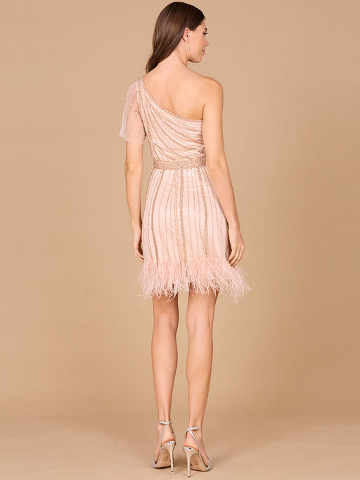 View full detailsThis flirty Lara cocktail dress features a cute one shoulder design with delicate feather detailing and sparkling beads. Perfect for any fun and fl...