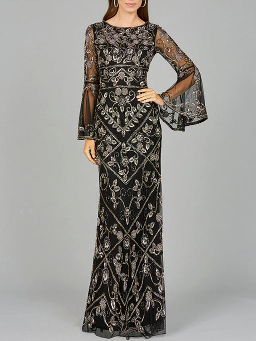 View full detailsGet ready to turn heads with the Lara 28888 Long Sleeve Beaded Gown! This stunning sheath dress features intricate beading and a flattering v-neckl...