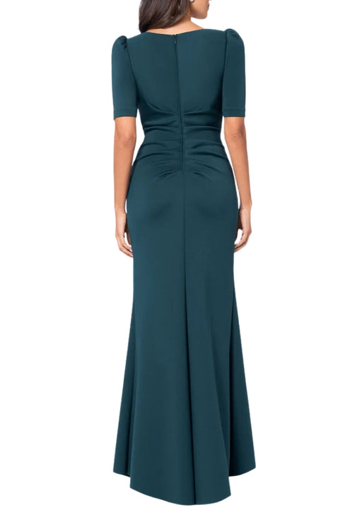 View full detailsGraceful Silhouette, Refined Glamour Radiate poise and timeless charm in the XScape Demi Boat Neckline Short Set-In Sleeves Back Zipper Side Ruffle...