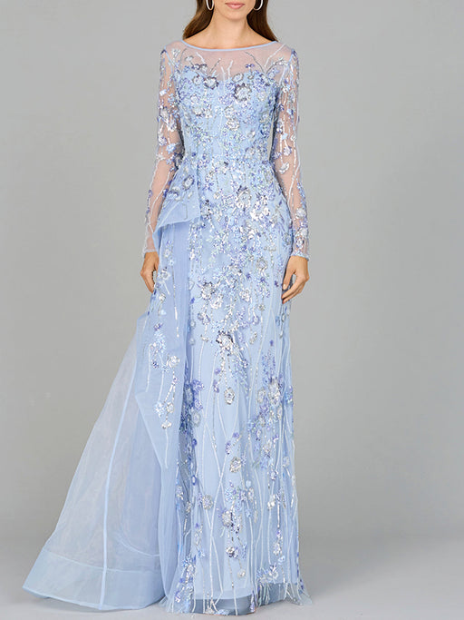 View full detailsA shimmering lace ball gown with long sleeves and an illusion neckline featuring a gorgeous lace embroidered pattern and sheer long sleeves which...