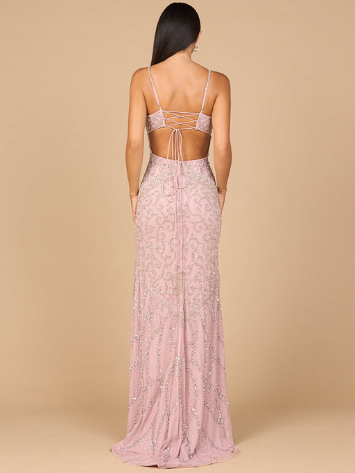View full detailsGet ready to turn heads in the Lara 9929! This stunning dress features intricate beadwork and a sexy lace up open back. The fitted silhouette and s...