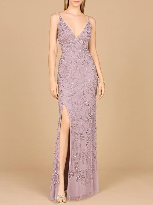 View full detailsShimmering beaded dress featuring delicately beaded spaghetti straps and a high slit. Wear this for your birthday party or prom and shine in the sp...