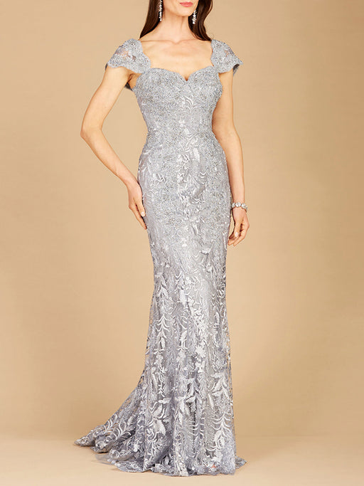 View full detailsThis lovely gown featuring a sweetheart neckline with cap sleeves and a fitted bodice. This dress is finished off with a mermaid bottom. One of our...