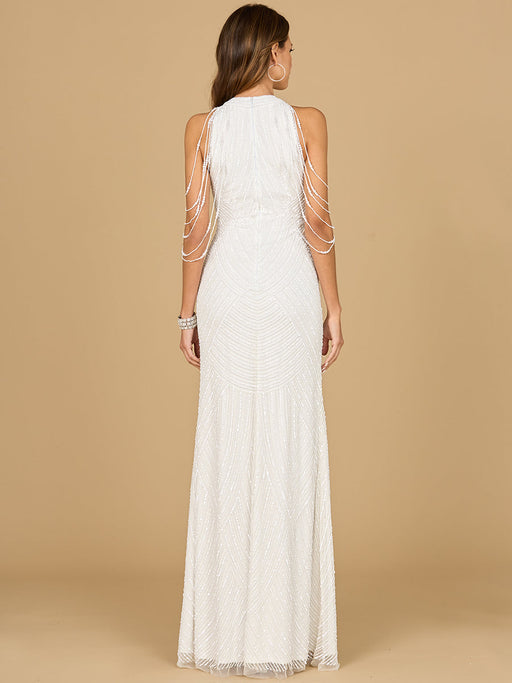 View full detailsGet ready to turn heads in the sparkling Lara 51191 Beaded Gown! With intricate beading and a cowl back design, this dress is perfect for any bride...