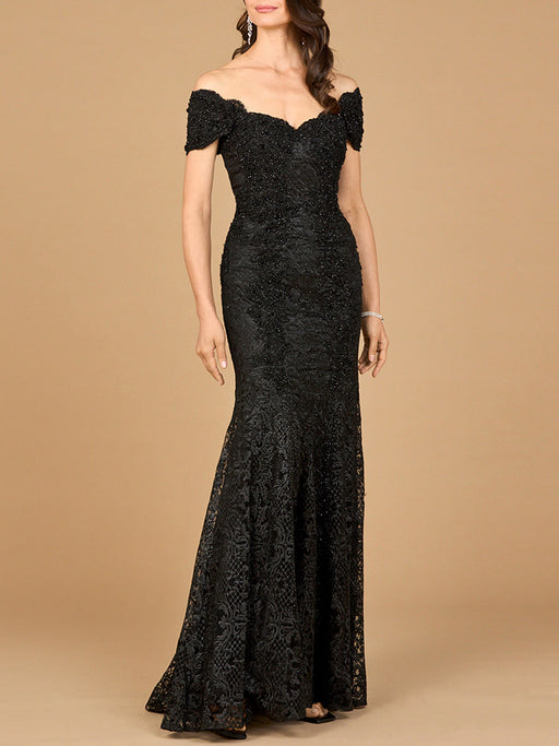View full detailsBe the epitome of modern elegance in this Lara 28959 gown. The off shoulder neckline and fitted silhouette create a sleek and sophisticated look, w...