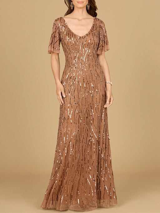 View full detailsCap sleeve cocktail gown covered in symmetrical fringe beading featuring a v-neckline. This is one of our favorite new dresses to show off your cur...