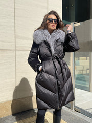 Alaska® presents Winter Collection of modern warmest parka. With rich Silver fox fur trim outside, white duck down fill insulation inside, this parka will be your best companion for coldest outdoor activities. Made of high-quality Italian water-repellent fabric parka can effortlessly withstand temperatures up to -30°C.