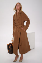 Cambridge Comfort Wraparound Wool Cashmere Coat in Dark Camel