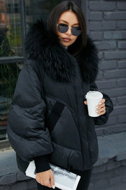 Chantal Genuine Fur Trim Down Fill Coat in Black